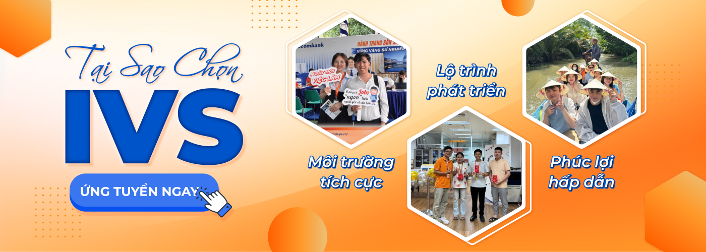 Khởi đầu sự nghiệp cùng IVS: Bạn đã tốt nghiệp và hiện đang tìm kiếm một nơi khởi đầu đầy triển vọng cùng những thử thách? Ở IVS, bạn sẽ có cơ hội trải nghiệm công việc ở nhiều dự án khác nhau cũng như cơ hội làm việc ở nước ngoài. Đây sẽ là những bước tiến để bạn tích lũy kinh nghiệm và hoàn thiện bản thân